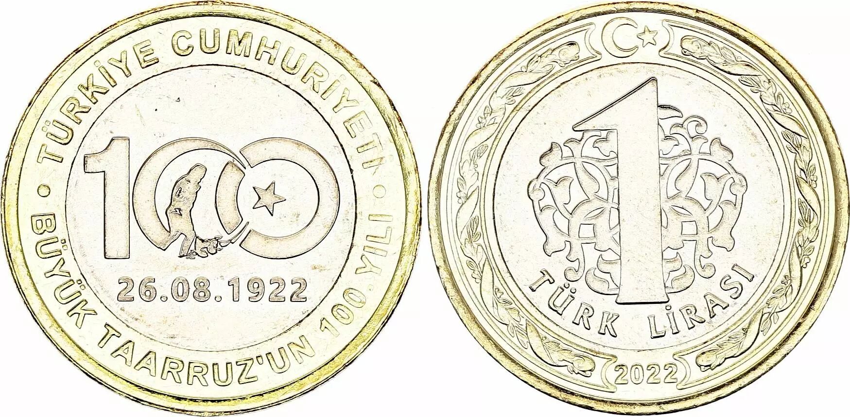 Coin Turkey 1 Lira - 100th anniversary of the great offensive - 2022 - Bimetal