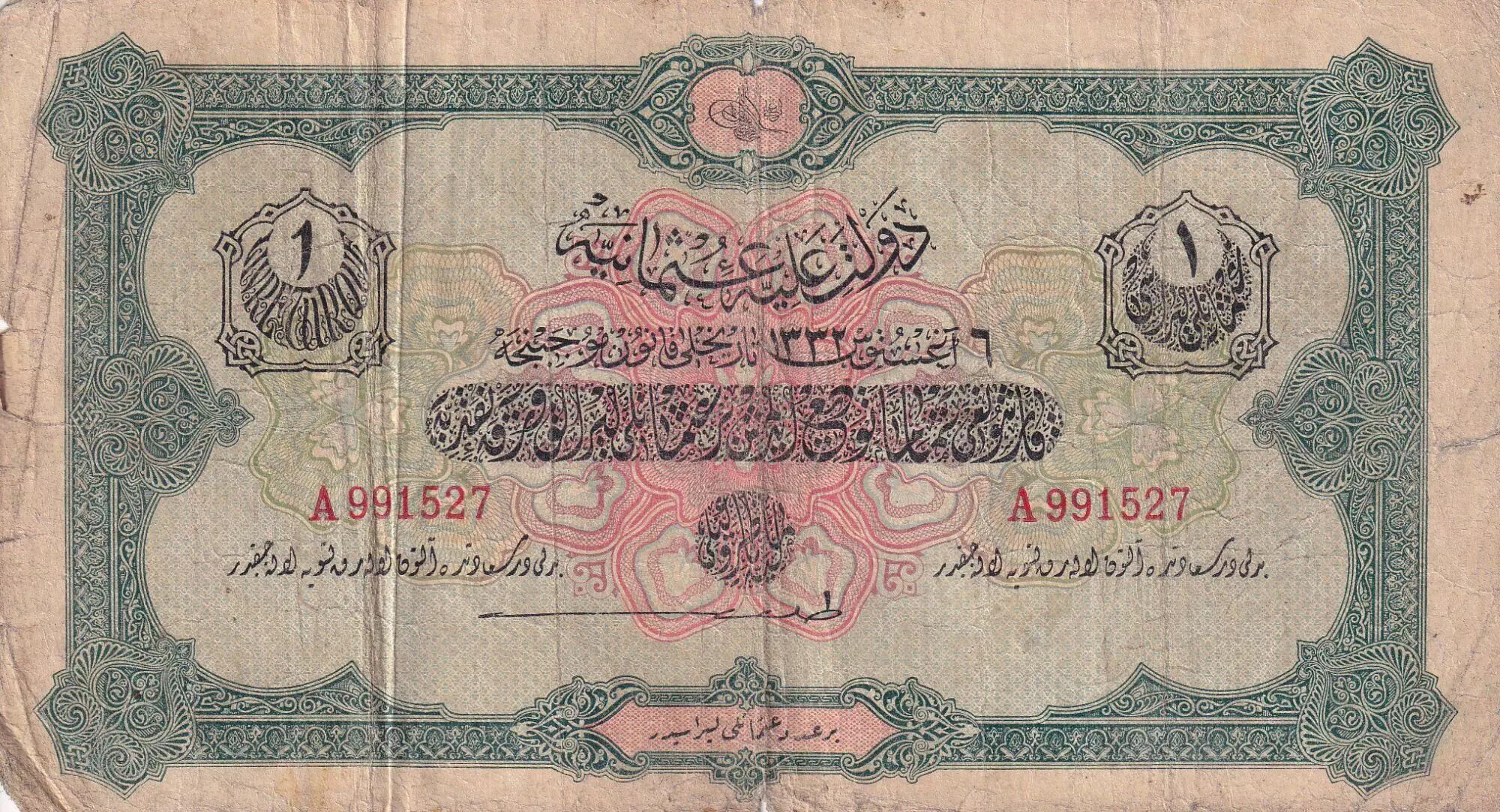 Home > > Turkey 1 Piastre - Green and Beige - VG to F - 1916-1917 - P.90