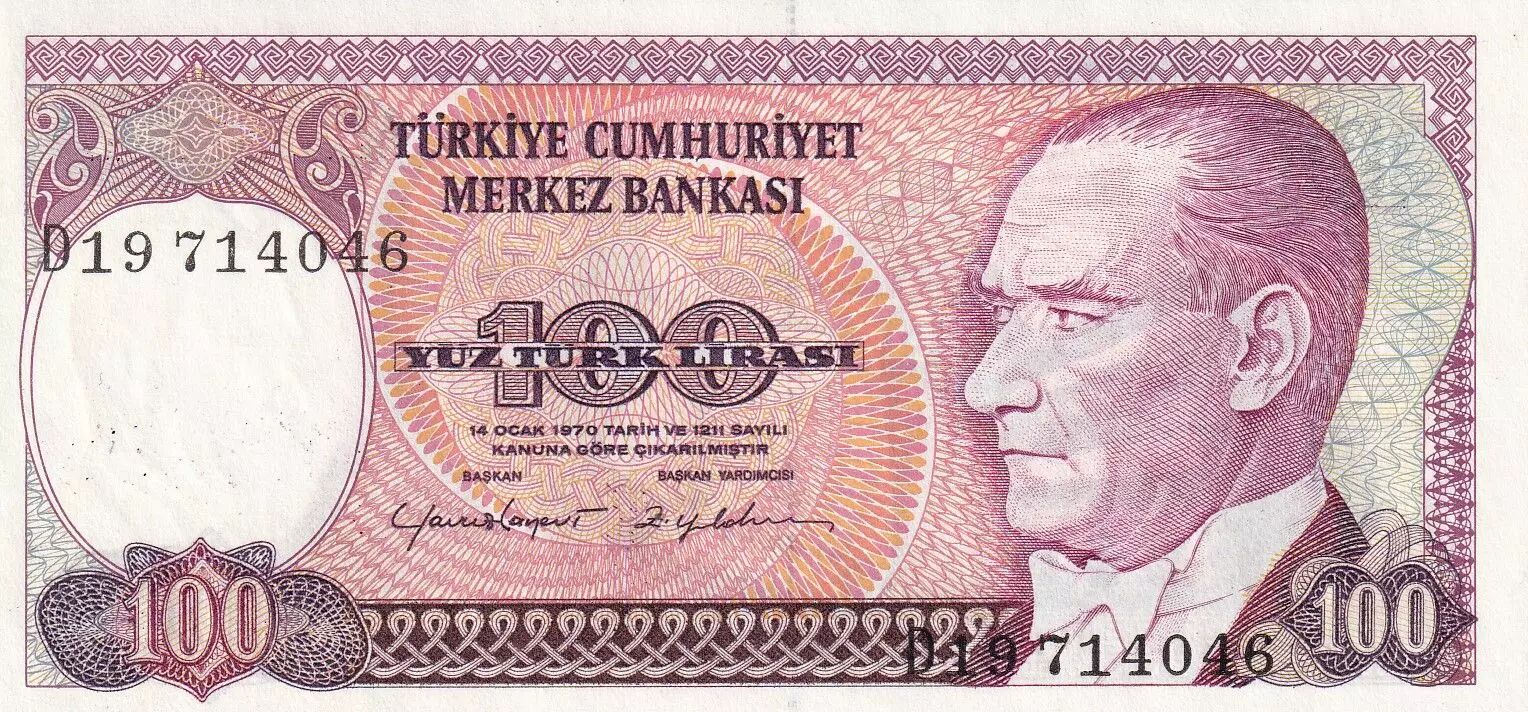 Home > > Turkey 100 Turk Lirasi - Pdt Ataturk - ND (1984) - Serial D - P.194a