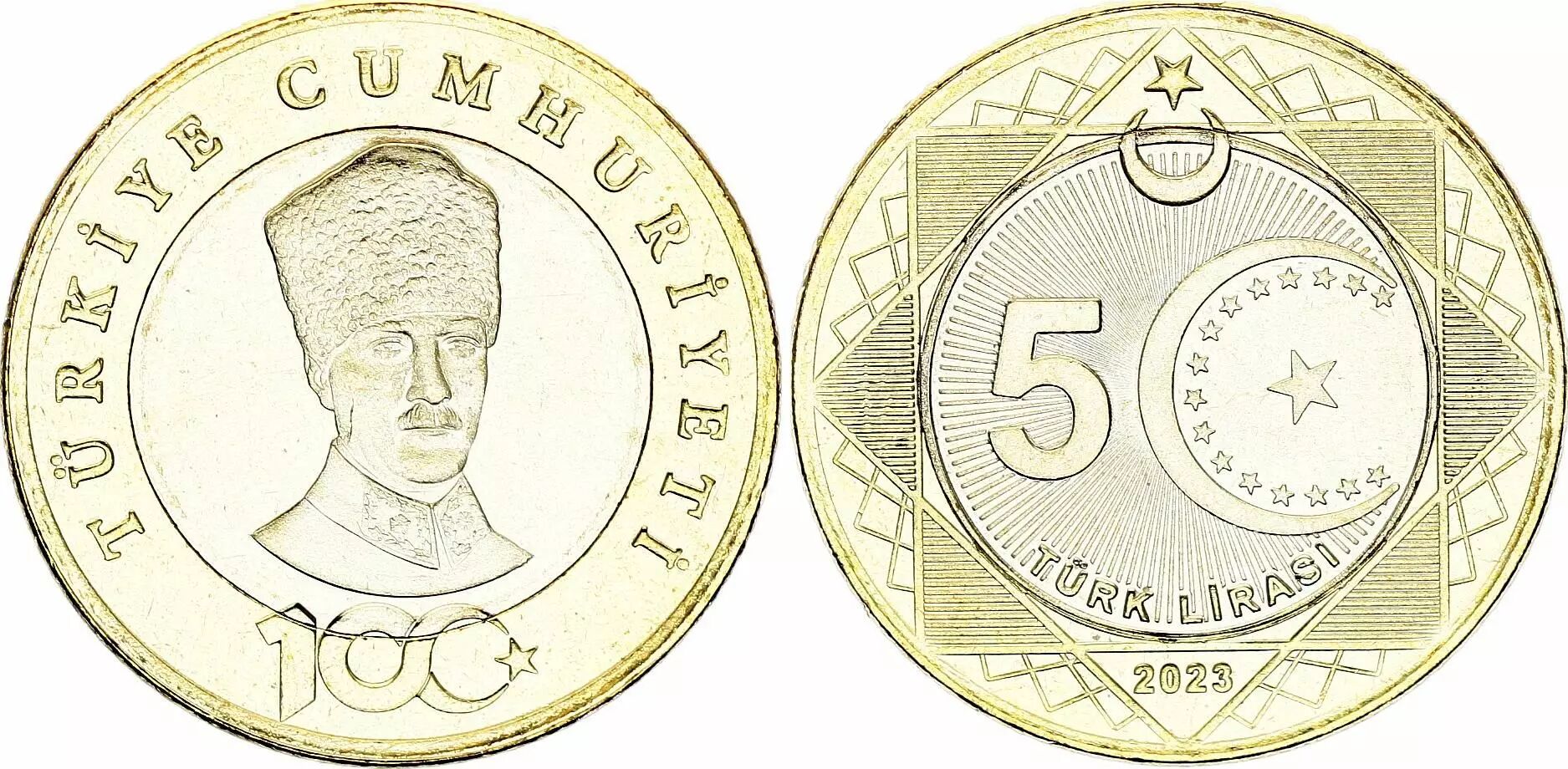 An image of Mustafa Kemal Atatürk and the logo for the 100th anniversary of the Republic.