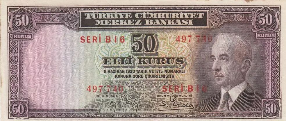 Banknote Turkey 50 Kurush - Pdt L. Inonu - Bank - 1930