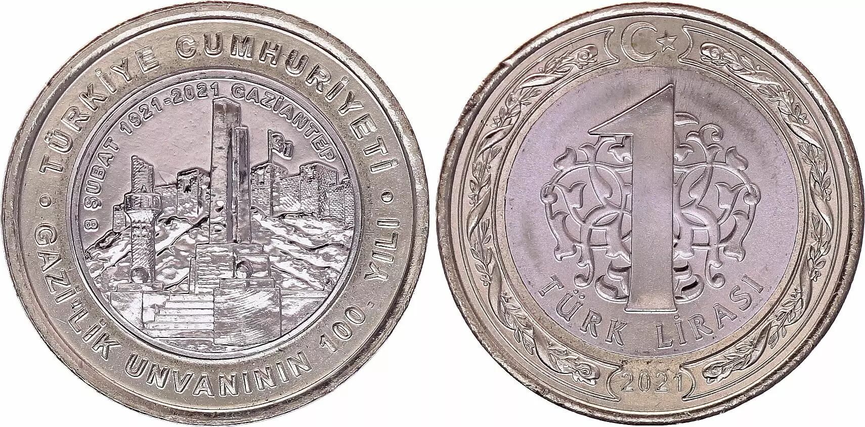 Accueil > > Turquie 1 Lira 100 ans des Vétérans de Gaziantep - 2021 Bimétal - SPL