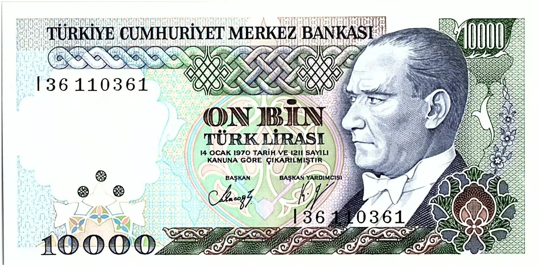 Accueil > Billets du Monde > Billets d'Europe > Turquie > Turquie 10000 Lira, Président Ataturk - Minar sinar- 1989 - P. 200