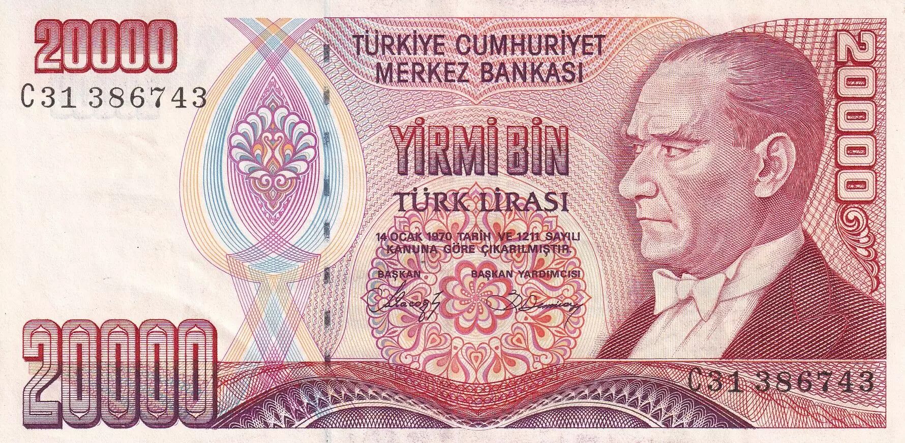 Billet Turquie 20000 Turk Lirasi - Pdt Ataturk - ND (1988) - Série C - P.201b