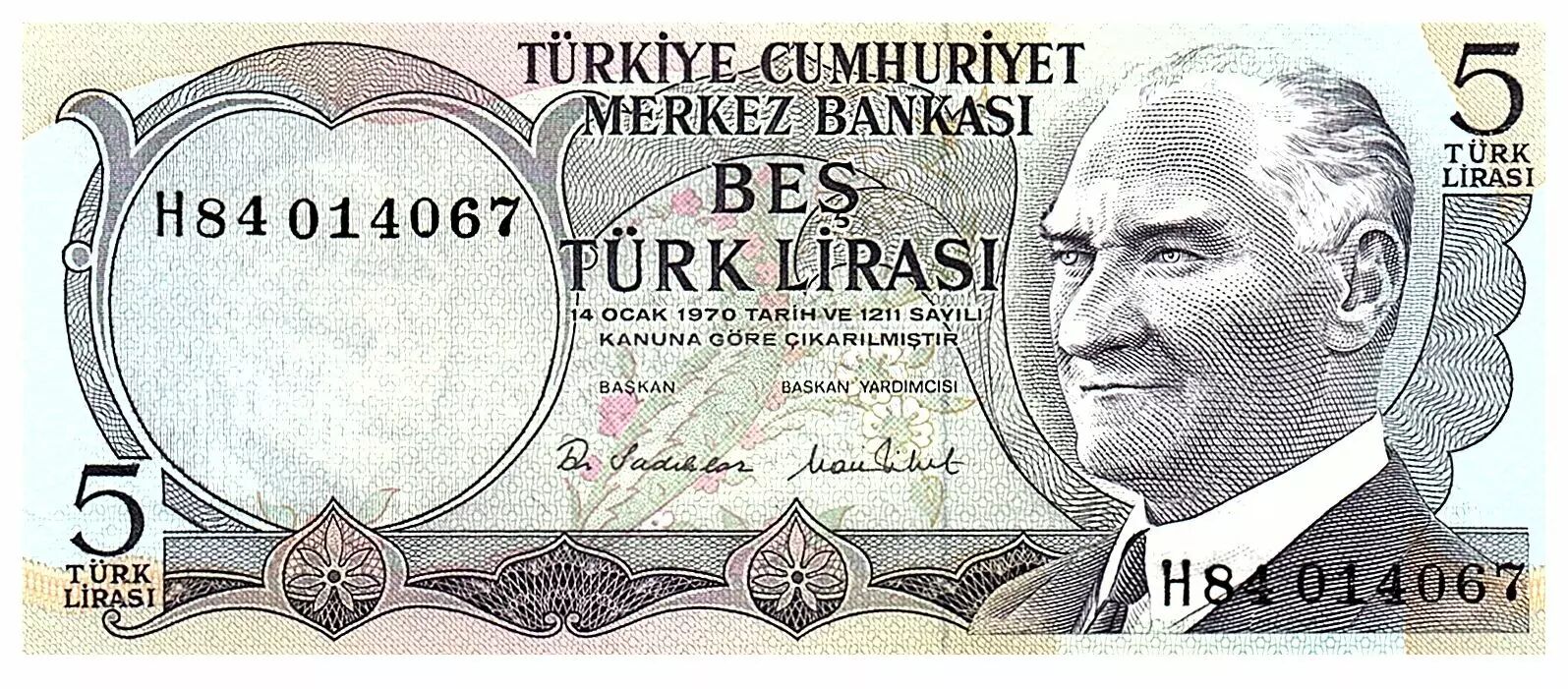 Billet Turquie 5 Lirasi Pdt Ataturk - Cascade - 1976 - série H