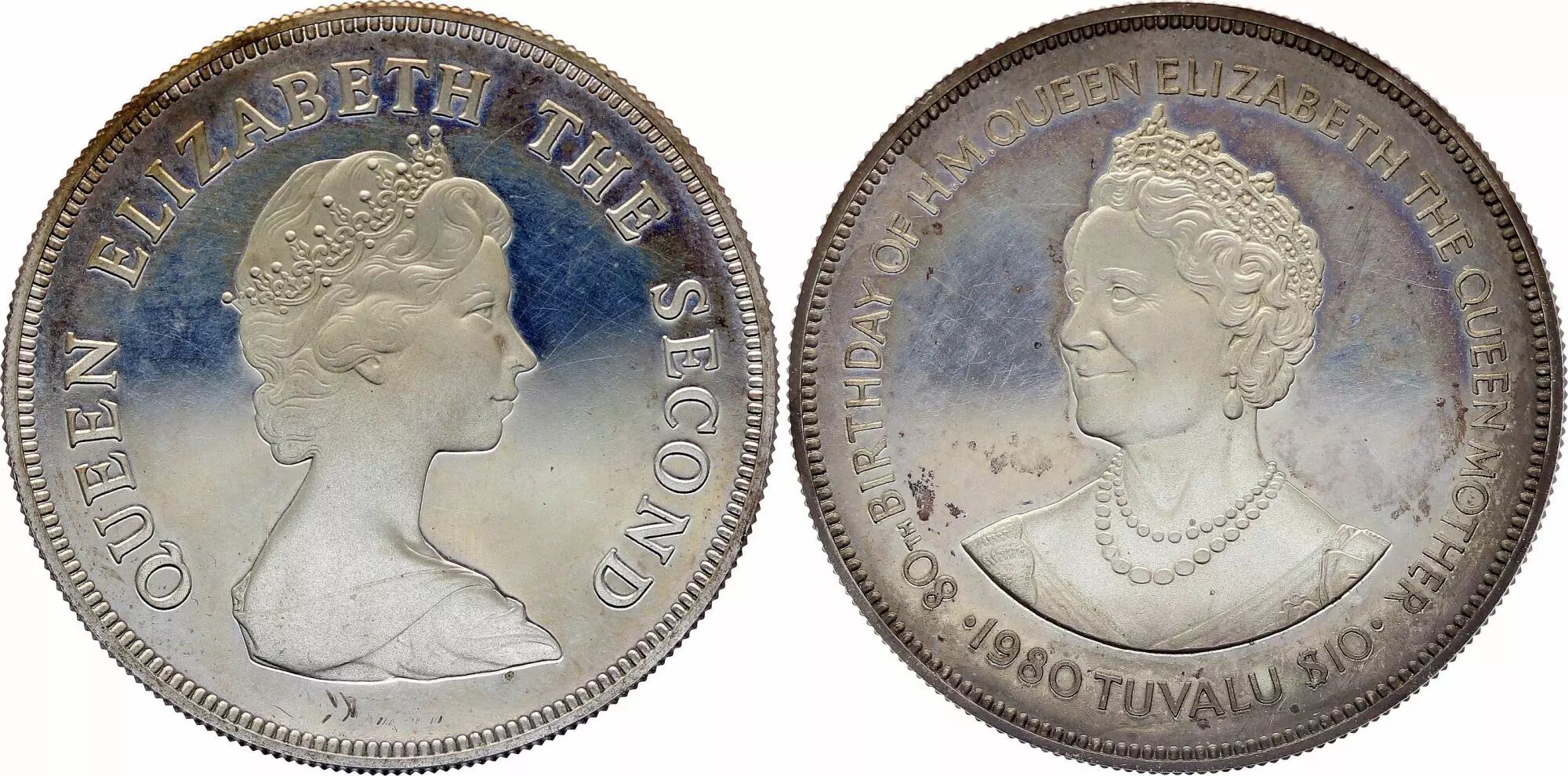 Coin Tuvalu 10 Dollars, Queen mother - 1980 - Silver