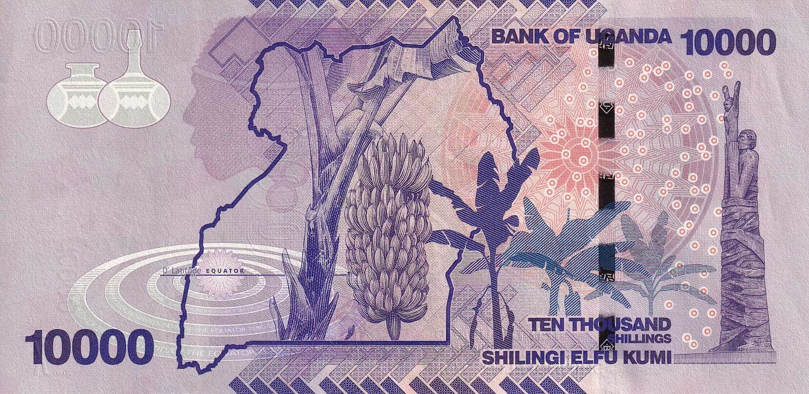 Banknote Uganda 10000 Shillings - Waterfall - Bananas - 2010 - XF to AU - P.52a