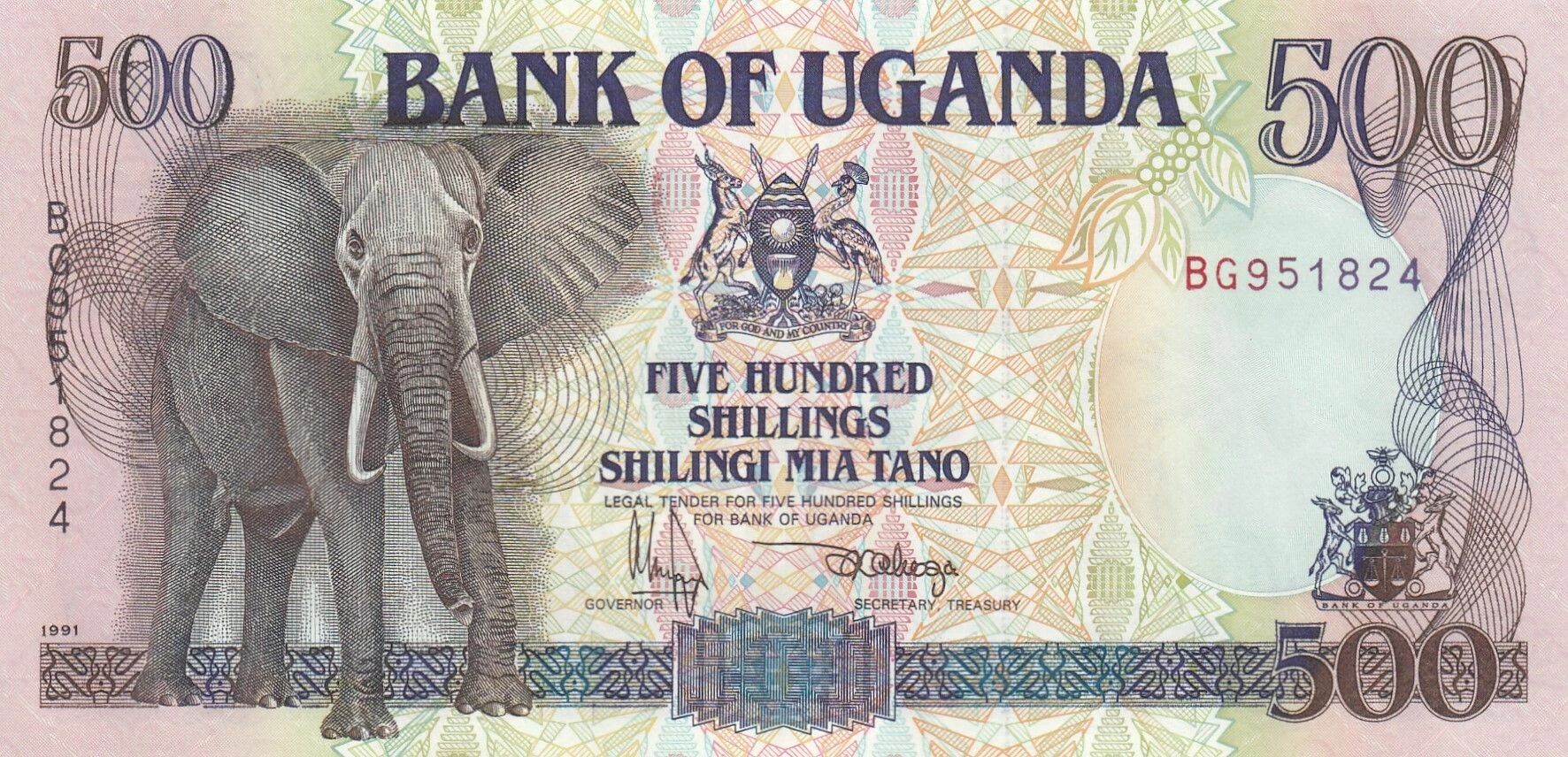 This Ugandan banknote was issued in 1991. It has a face value of 500 shillings.