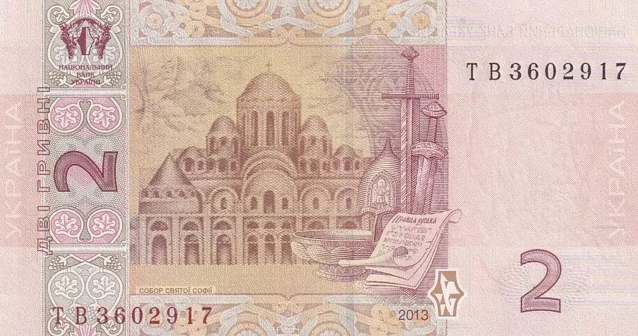 Le billet de 2 hryvni, émis par l'Ukraine en 2013, est un billet de la série commémorant le Prince Yaroslav le Sage et la Cathédrale Sainte-Sophie de Kiev. Ses dimensions sont de 118 mm de longueur et 63 mm de largeur.