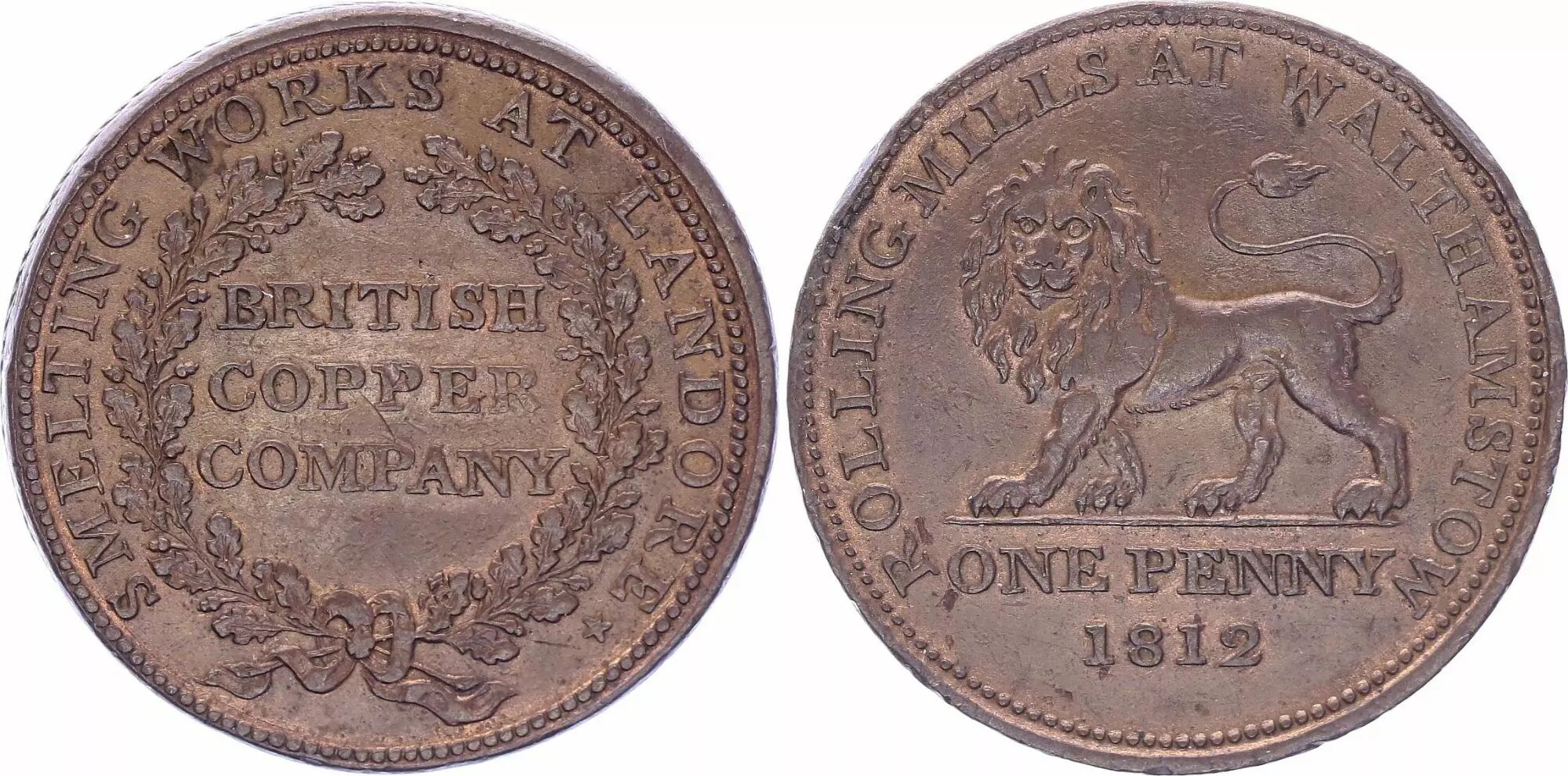 Home > World Coins > European Currencies > United Kingdom > United Kingdom 1 Penny - Rolling Mills at Walthamston - 1812 - Copper Token - XF