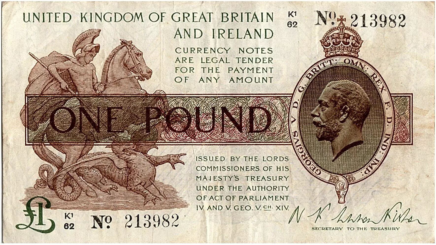 Banknote United Kingdom 1 Pound, George V - St George, dragon - 1922 - VF - P.359 - Serial K1/62