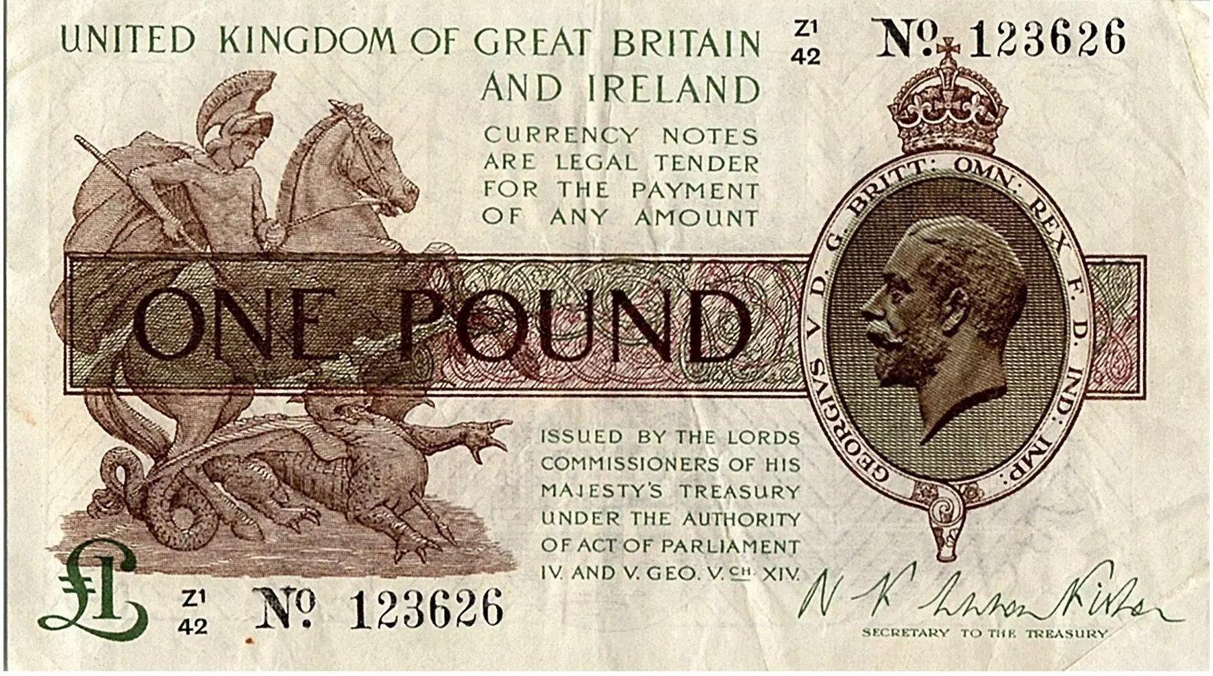 Banknote United Kingdom 1 Pound, George V - St George, dragon - 1922 - VF - P.359 - Serial Z1/42