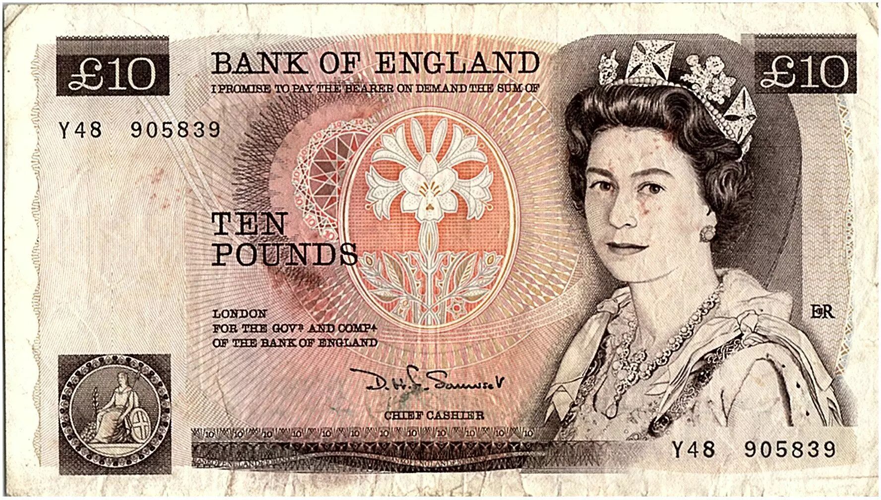 Home > > United Kingdom 10 Pounds, Elizabeth II - Florence Nightingale - 1980 - P.379b - F to VF - Serial Y.48