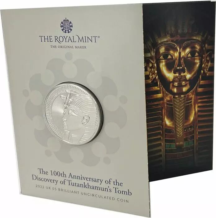 The Royal Mint is celebrating 100 years since the discovery of Tutankhamun's tomb. Struck in BU, it is presented in an official blister pack.