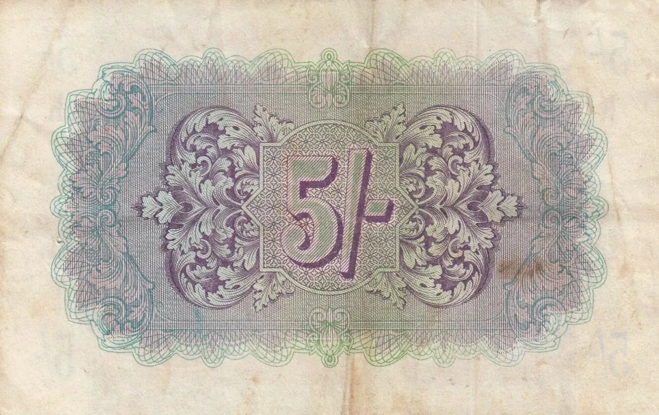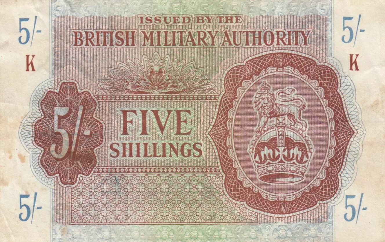 Banknote United Kingdom 5 Shillings British Military Authority - 1943 - Serial K