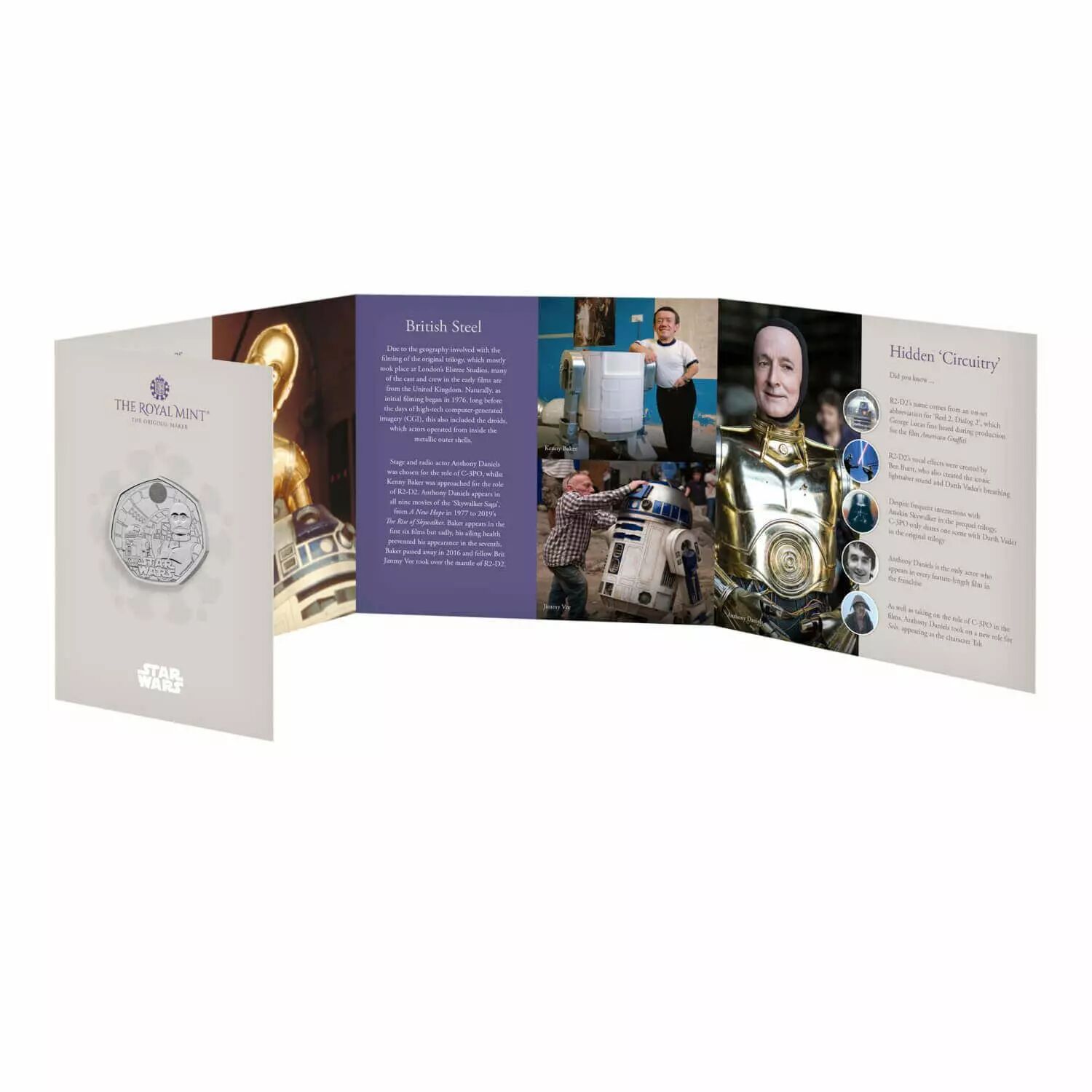 A brand new science fiction universe was born with the creation of the epic science fiction saga, Star Wars. Today, more than 45 years after the release of the first film on the big screen, for the first time, this incredibly popular film series lands on British coinage. Since its cinematic debut in 1977, a multitude of unique and wonderful beings have populated the Star Wars universe, offering a true galaxy of interweaving species. With a cast of characters like no other, it is evident that two of the most endearing of this intergalactic ensemble are R2-D2 and C-3PO.
