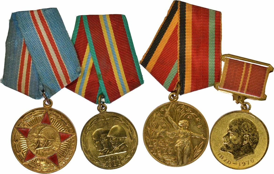 Comprend la médaille pour les 30 ans de la Victoire dans la Grande Guerre Patriotique, la médaille pour les 50 ans des Forces armées, la médaille pour les 70 ans des Forces armées et la médaille pour le 100e Anniversaire de Lénine.