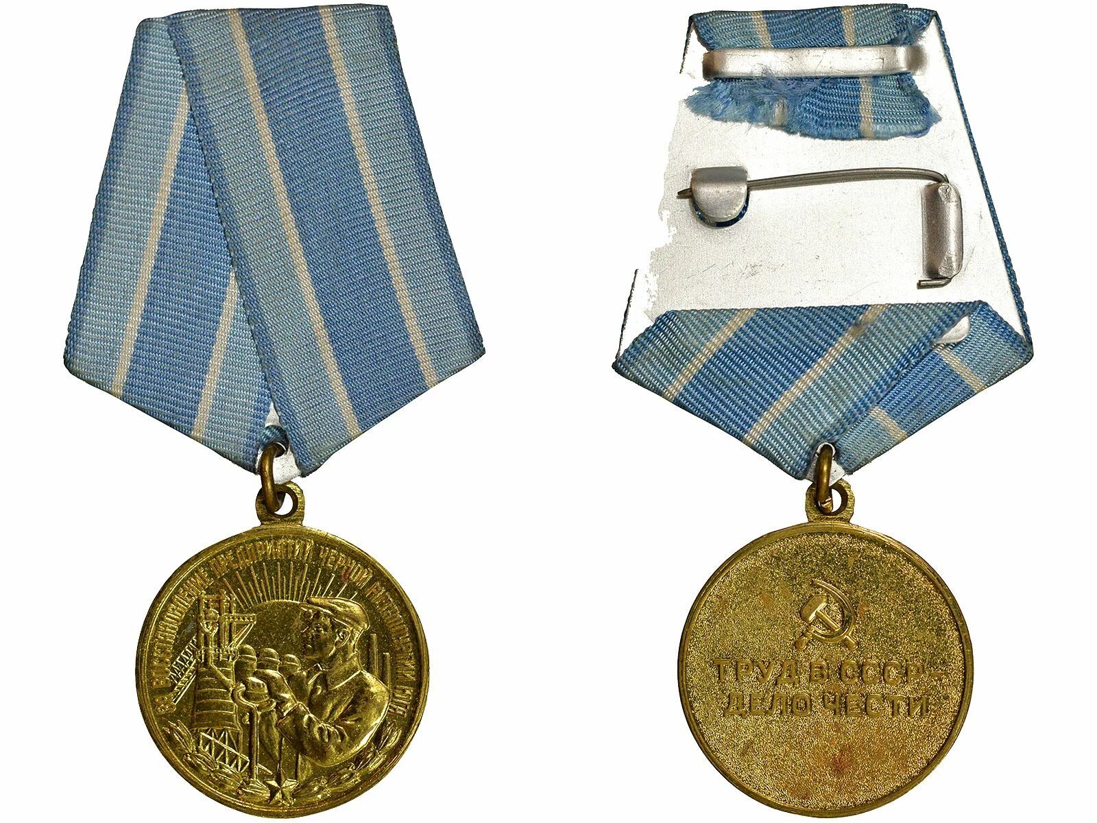 Décernée aux travailleurs soviétiques pour d?exceptionnelles performances dans la restauration des entreprises de métallurgie ferreuse de l?Union soviétique qui furent détruites durant la Grande Guerre patriotique. 13 hauts fourneaux, 49 fours ouverts, 29 moulins de finition et 68 four à coke furent restaurés à des niveaux de production nominaux ou exceptionnels.