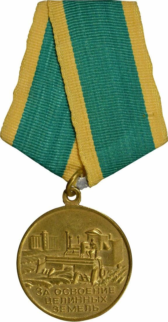 Décernée à tous les travailleurs soviétiques qui ont aidé à cultiver 36,000,000 d? hectares de terres auparavant non cultivées au Kazakhstan, en Sibérie, dans l?Oural, dans la région de la Volga et dans le Caucase du Nord pour deux années complètes de 1954 à 1956.