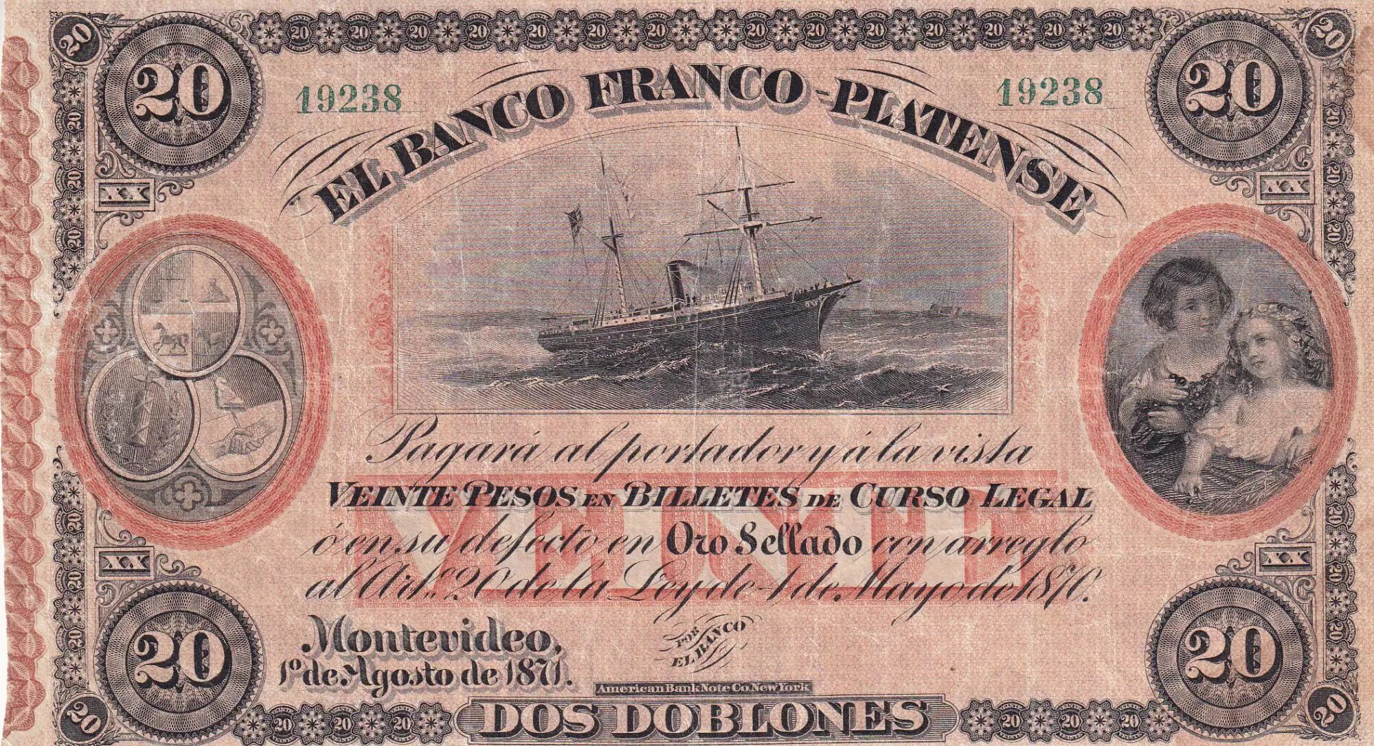 Banknote Uruguay 20 Pesos - El Banco Franco-Platense - 1871 - P.S173a