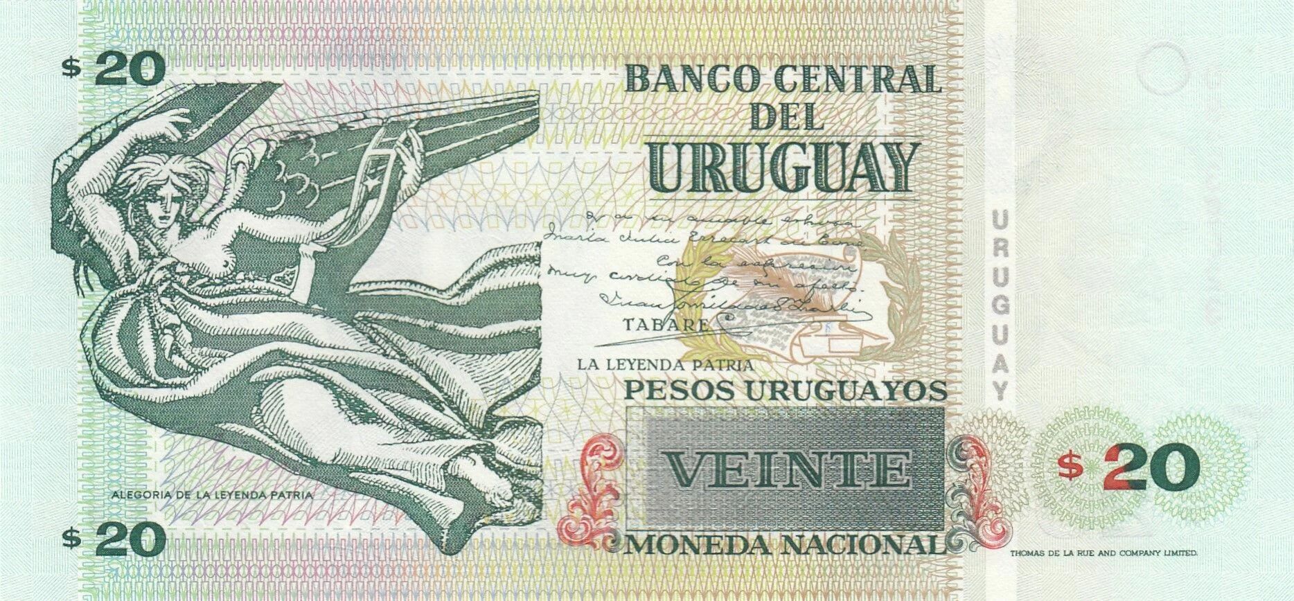 Ce billet de banque est émis par l'Uruguay et possède une valeur nominale de 20 pesos uruguayos. Il date de l'année 2000 et appartient à la Série C.