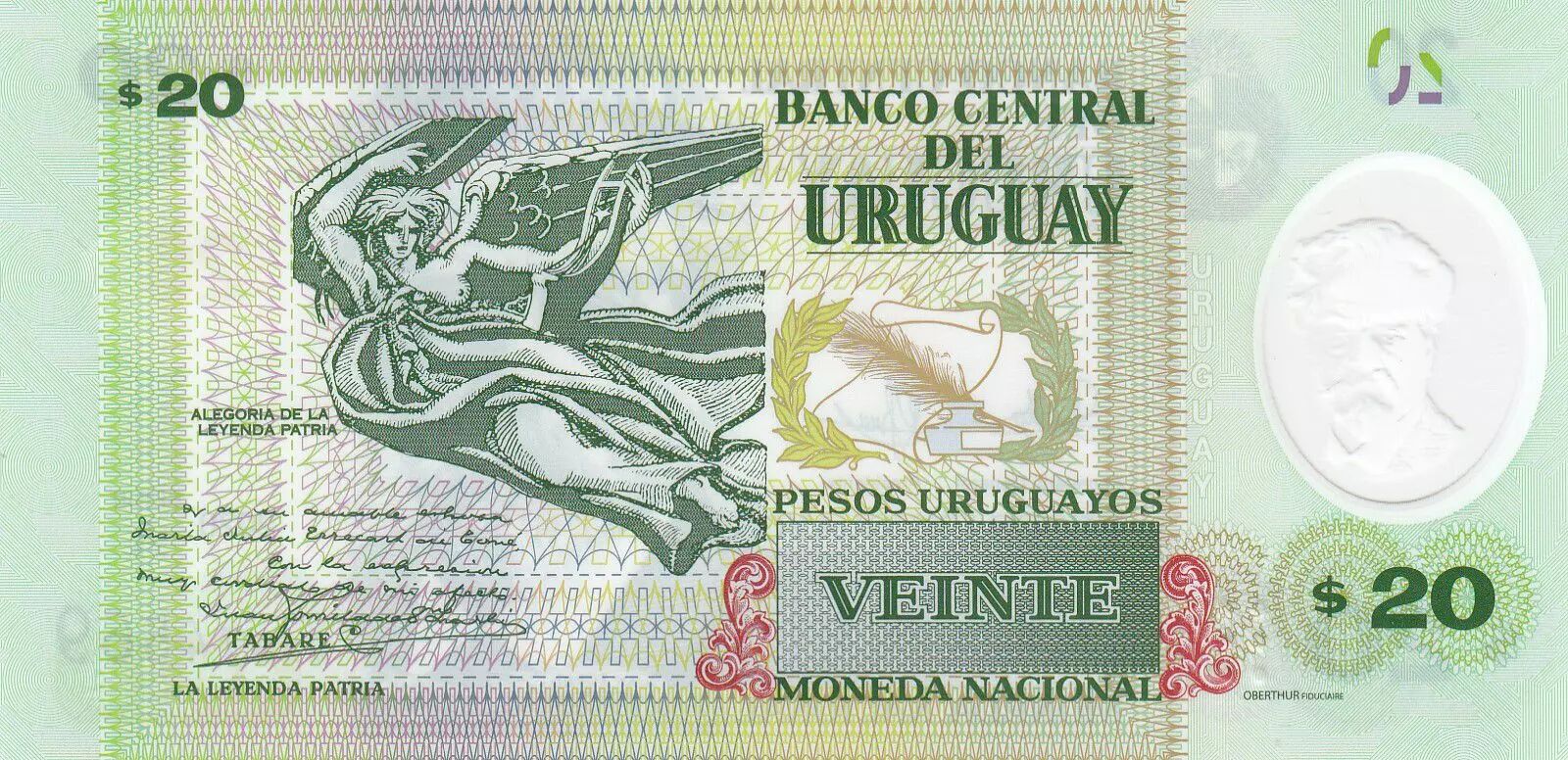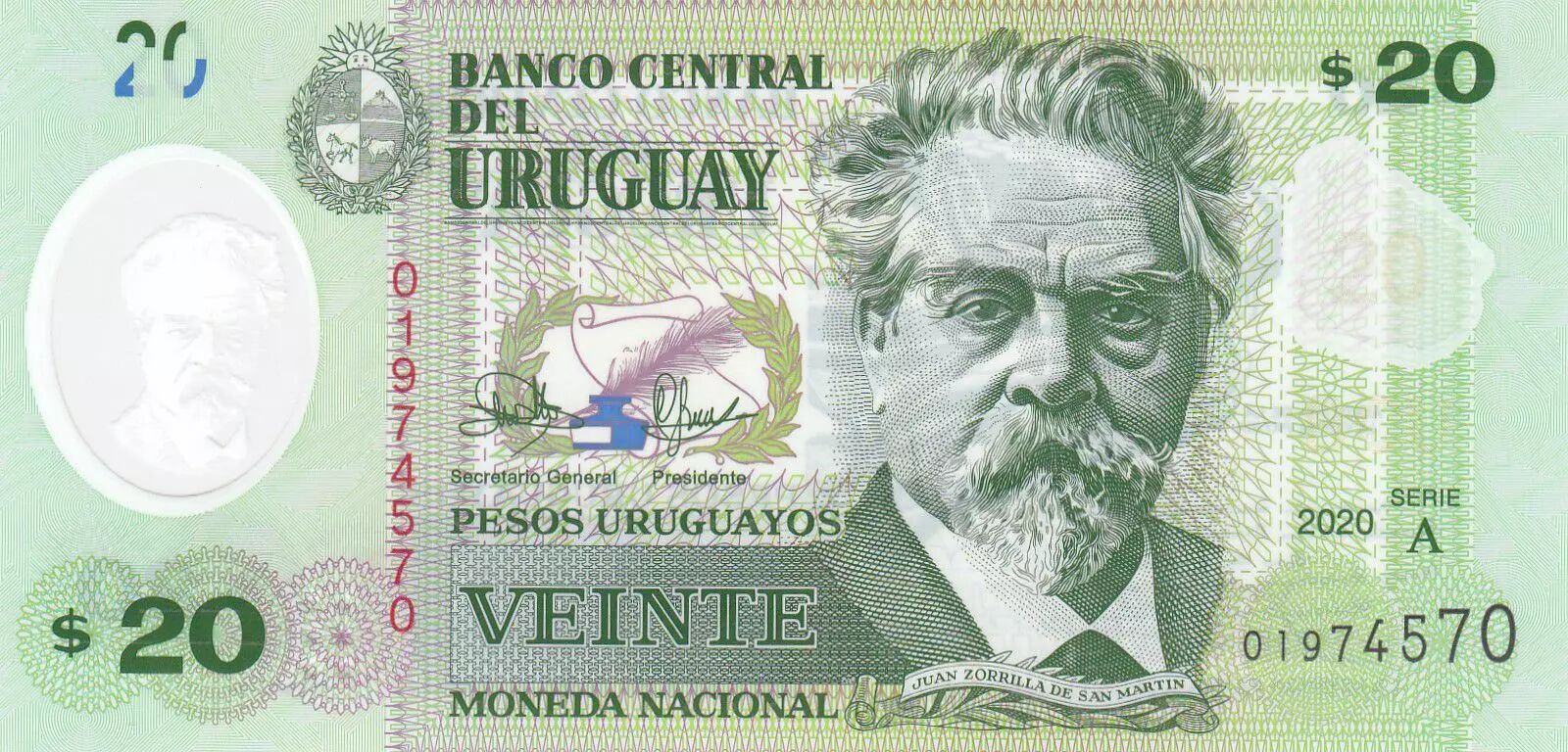Banknote Uruguay 20 Pesos Urugayos, Juan Zorrilla de San Martin - 2020 - Polymer - UNC