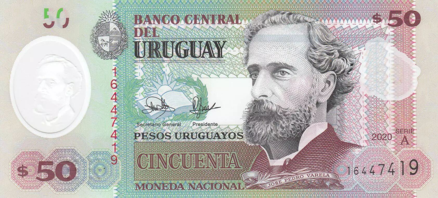 Home > World Banknotes > American Banknotes > Uruguay > Uruguay 50 Pesos Urugayos, José Pedro Varela - 2020 - Polymer - Neuf