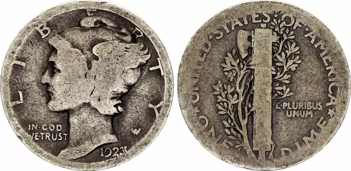 Coin USA 1 Dime Mercury - 1923 - Silver