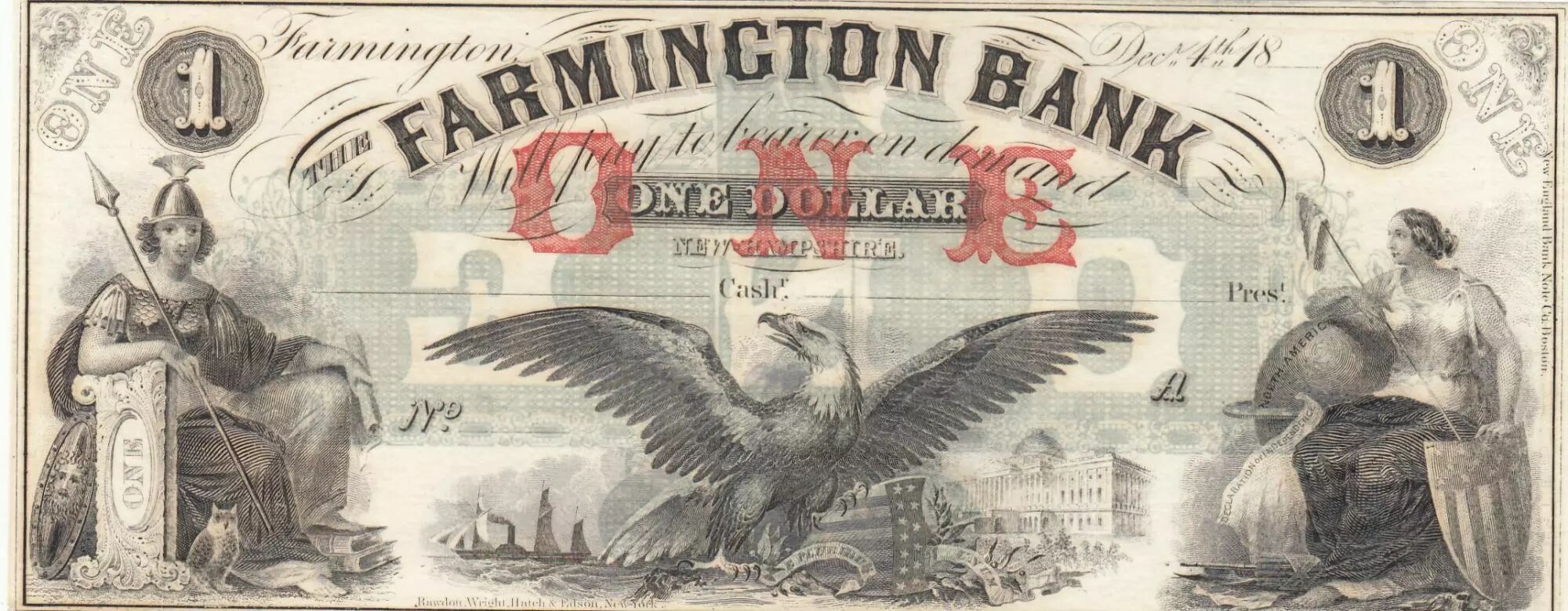Billet USA 1 Dollar - Banque de Farmington - New-Hampshire - Remainder - 1860