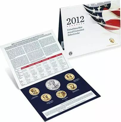 1 $ Dollar Coin Set 2012 - 6 coins All the coins of Presidents 2012 : Chester Arthur, Grover Cleveland, Benjamin Harrison, Grover Cleveland (2nd term) - Mint P- 1 $ Native American - Mint D - and 1 $ American Eagle in SILVER (1 oz.)