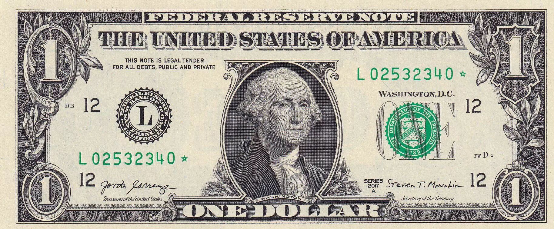 Banknote USA 1 Dollar - G. Washington - 2017 - Remplacement star - L San Francisco - P.544