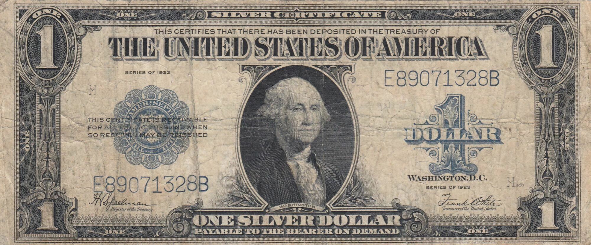 This 1923 1-dollar bill is a testament to the monetary history of the United States. It reflects the motifs and symbols used at that time to represent the nation and its economic value. Due to its age and condition, this banknote can be considered a numismatic collectible.