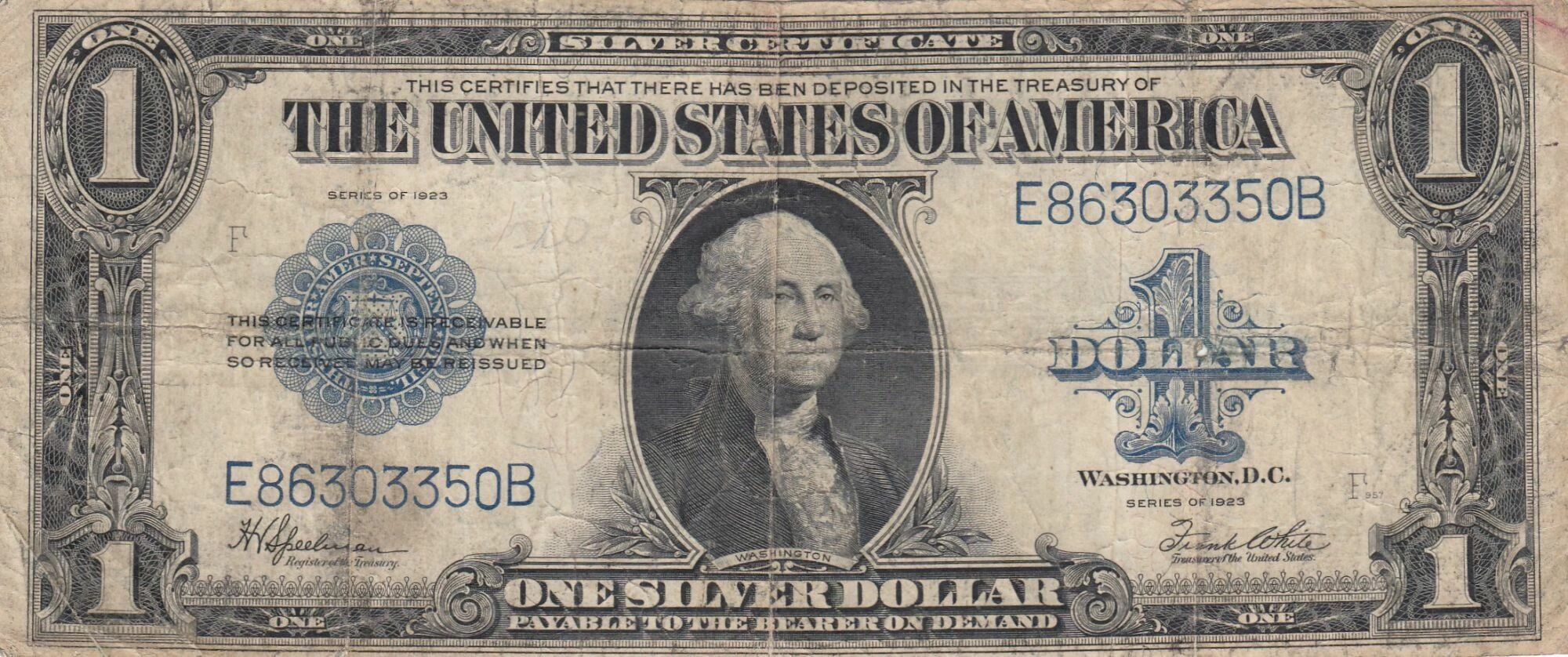This one-dollar United States banknote, issued in 1923, is an example of the "United States Notes" series produced by the Bureau of Engraving and Printing.