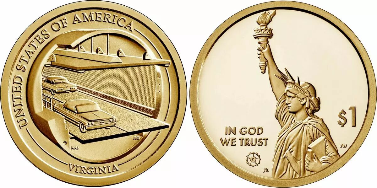 Pièce USA 1 Dollar Innovation Chesapeake Bay Tunnel - Virginie 2021 D Denver - SPL