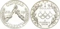 The obverse of the coin depicts an athlete in action, symbolizing the spirit of competition and excellence of the Olympic Games. The motif highlights the strength and determination of the athlete, capturing a moment of dynamism and intense effort. The mention "USA" is present, indicating the issuing country. The motto "In God We Trust" is also inscribed, reflecting national values and beliefs. The face value "One Dollar" is clearly indicated.
