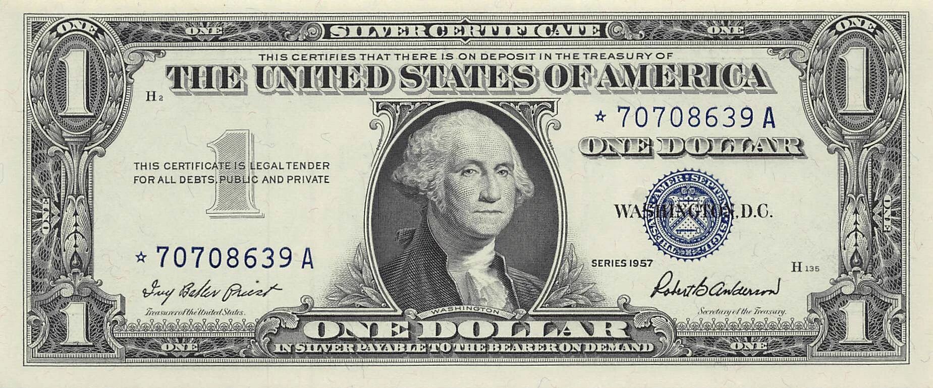 Home > World Banknotes > American Banknotes > United States of America > USA 1 Dollar - Silver Certificate - Série 1957 - P.419
