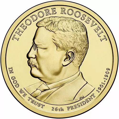 Thème : Théodore Roosevelt" - Série : "Les Présidents des Etats-unis sur des pièces de 1 dollar".