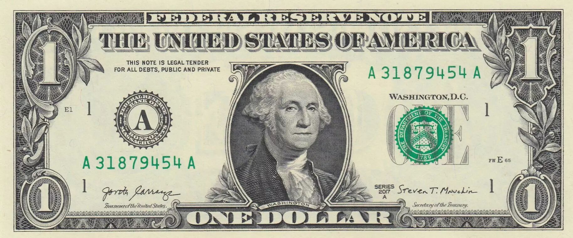 Banknote USA 1 Dollar Washington - 2017A - In Boston - Series A-A