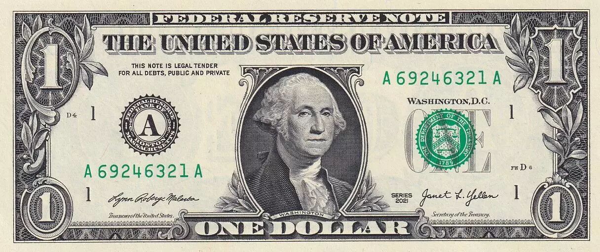 Banknote USA 1 Dollar Washington - 2021 - A1 Boston