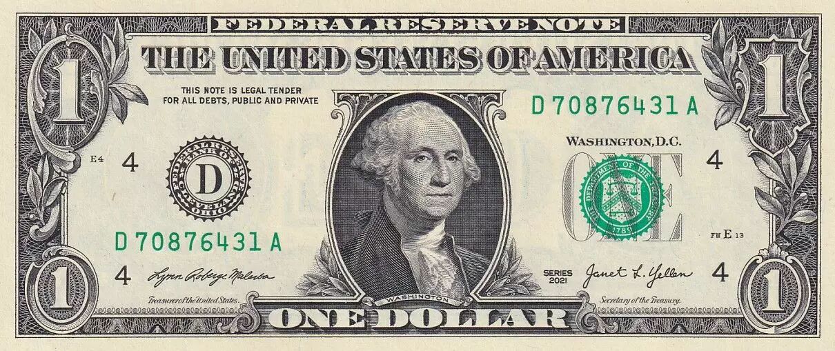 Banknote USA 1 Dollar Washington - 2021 - D4 Cleveland