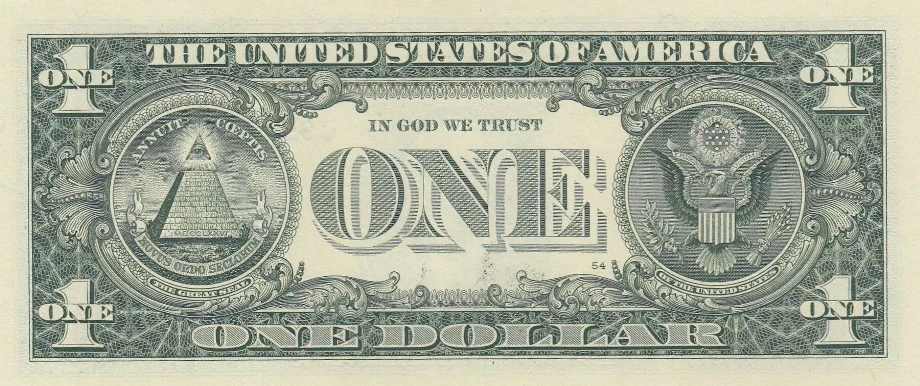 Le verso montre le Grand Sceau des États-Unis, avec l?aigle américain et la pyramide inachevée avec l?Å’il de la Providence, ainsi que les inscriptions standard de la réserve fédérale et la valeur faciale « ONE DOLLAR ». Ce billet conserve le design historique caractéristique des billets d?un dollar américain, avec des dispositifs de sécurité basiques adaptés à sa faible valeur faciale.