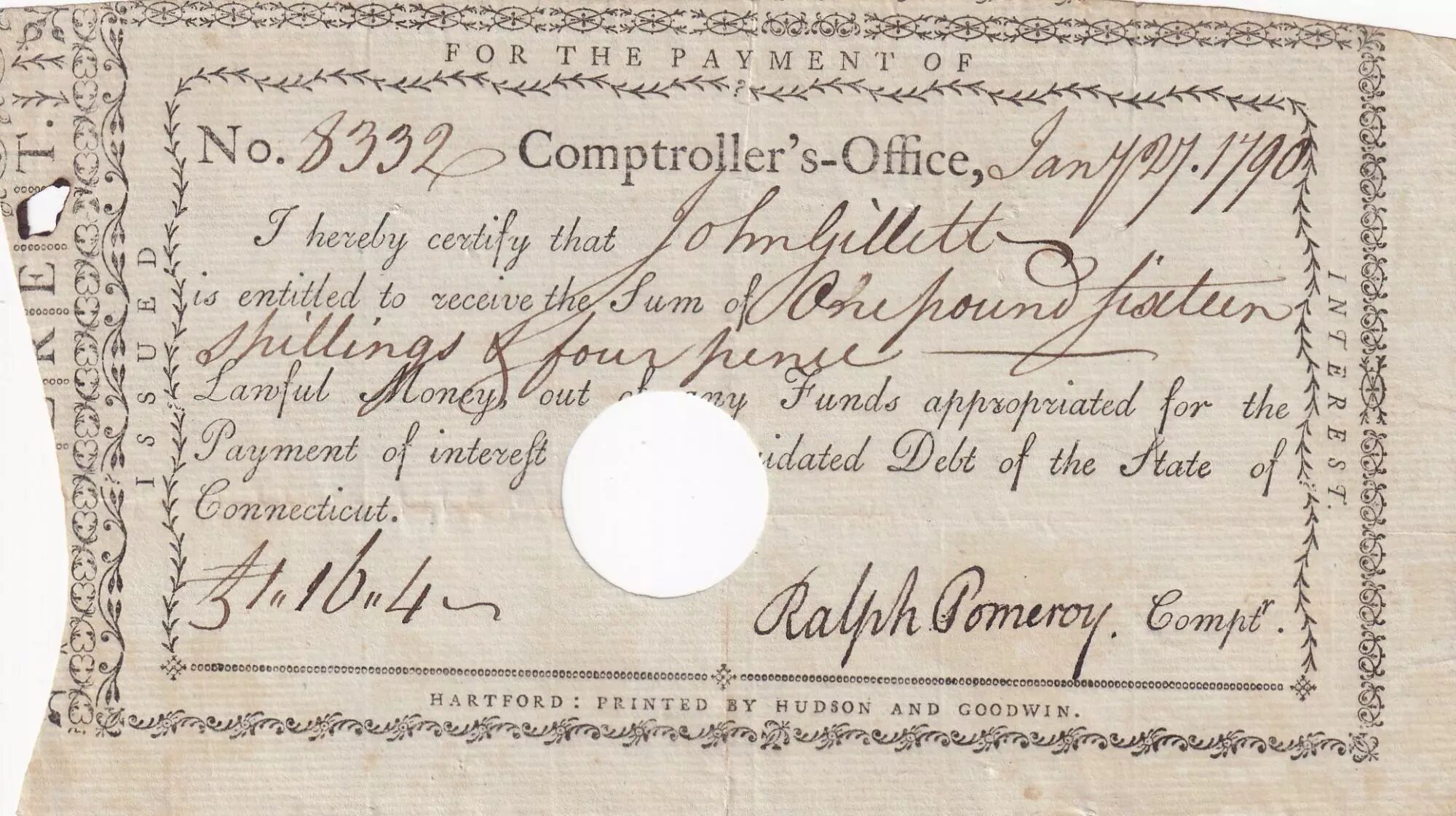 Banknote USA 1 Pound 16 Shillings - Comptroller Office - Connecticut - 1790
