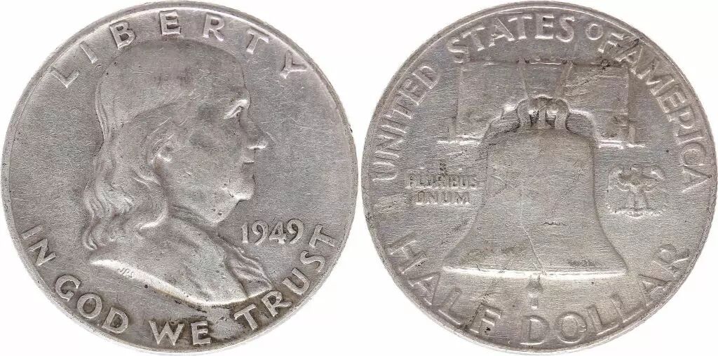 Coin USA 1/2 Dollar Benjamin Franklin - Liberty Bell - 1949 Silver