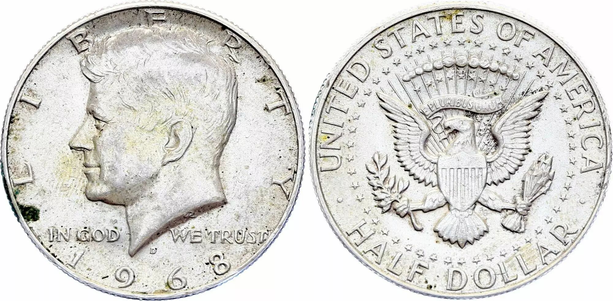 Coin USA 1/2 Dollar Kennedy - 1968 D - Silver
