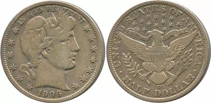 Pièce USA 1/2 Dollar Liberty, Barber
