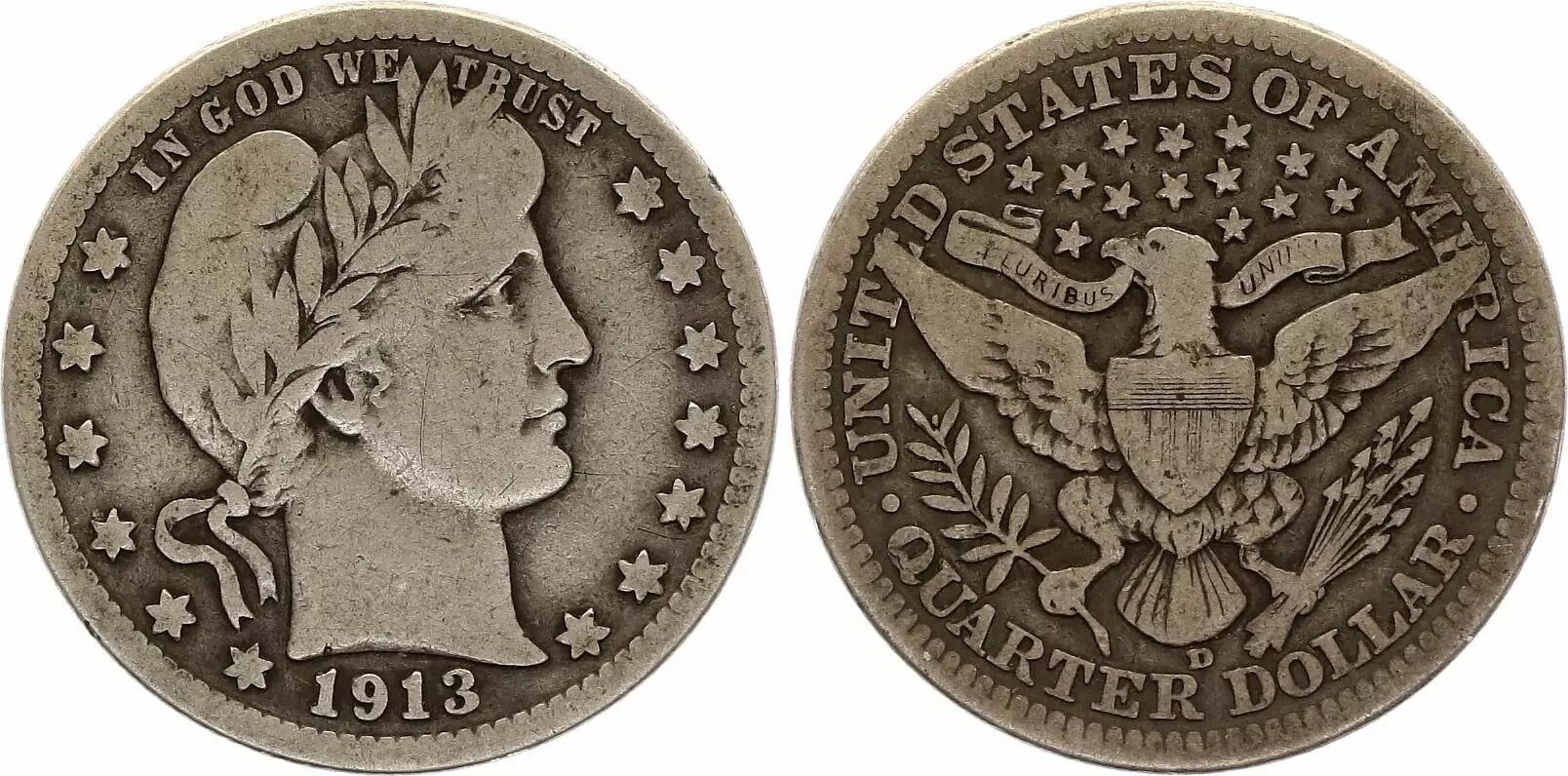 Pièce USA 1/4 Dollar Barber Quater - 1913 D - Argent