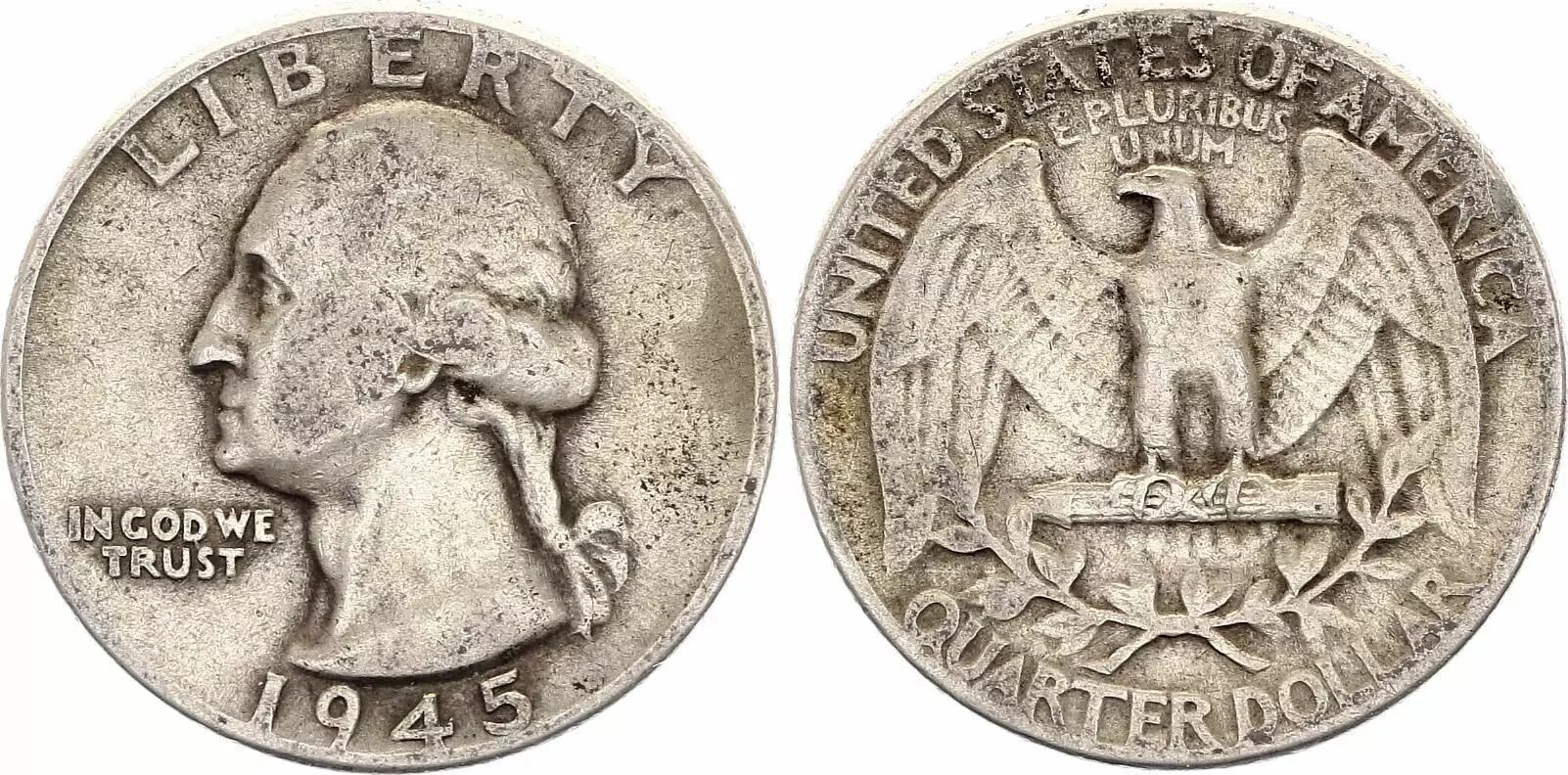 Home > > USA 1/4 Dollar Washington Quarter - 1945 - Silver