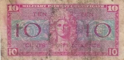 Accueil > Archivage > USA 10 cents - Billet militaire - Series 521 - Numéro 78 - 1954