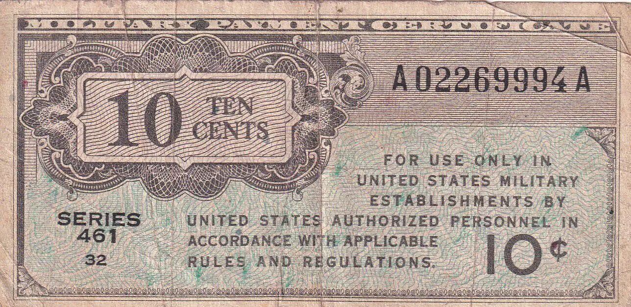 Banknote USA 10 Cents - Military Cerificate - 1946 - Serial 461 - M.2