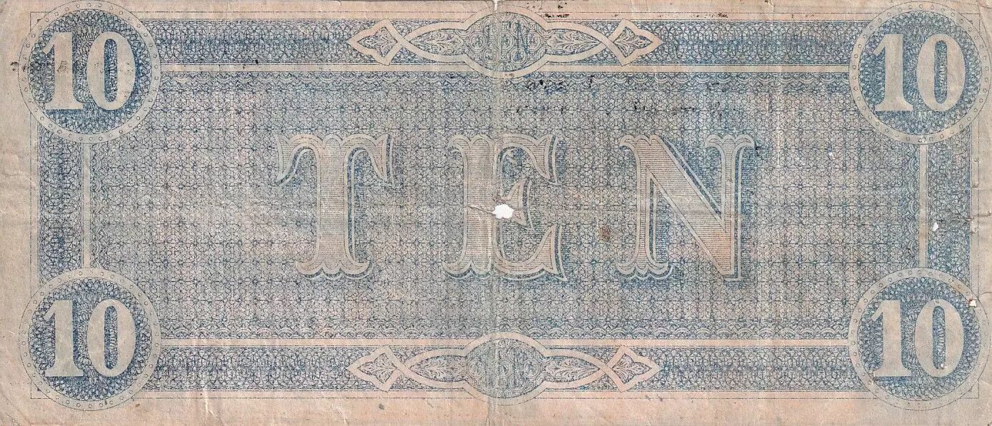 Banknote USA 10 Dollars Confederate States - 1864 - Serial 9634
